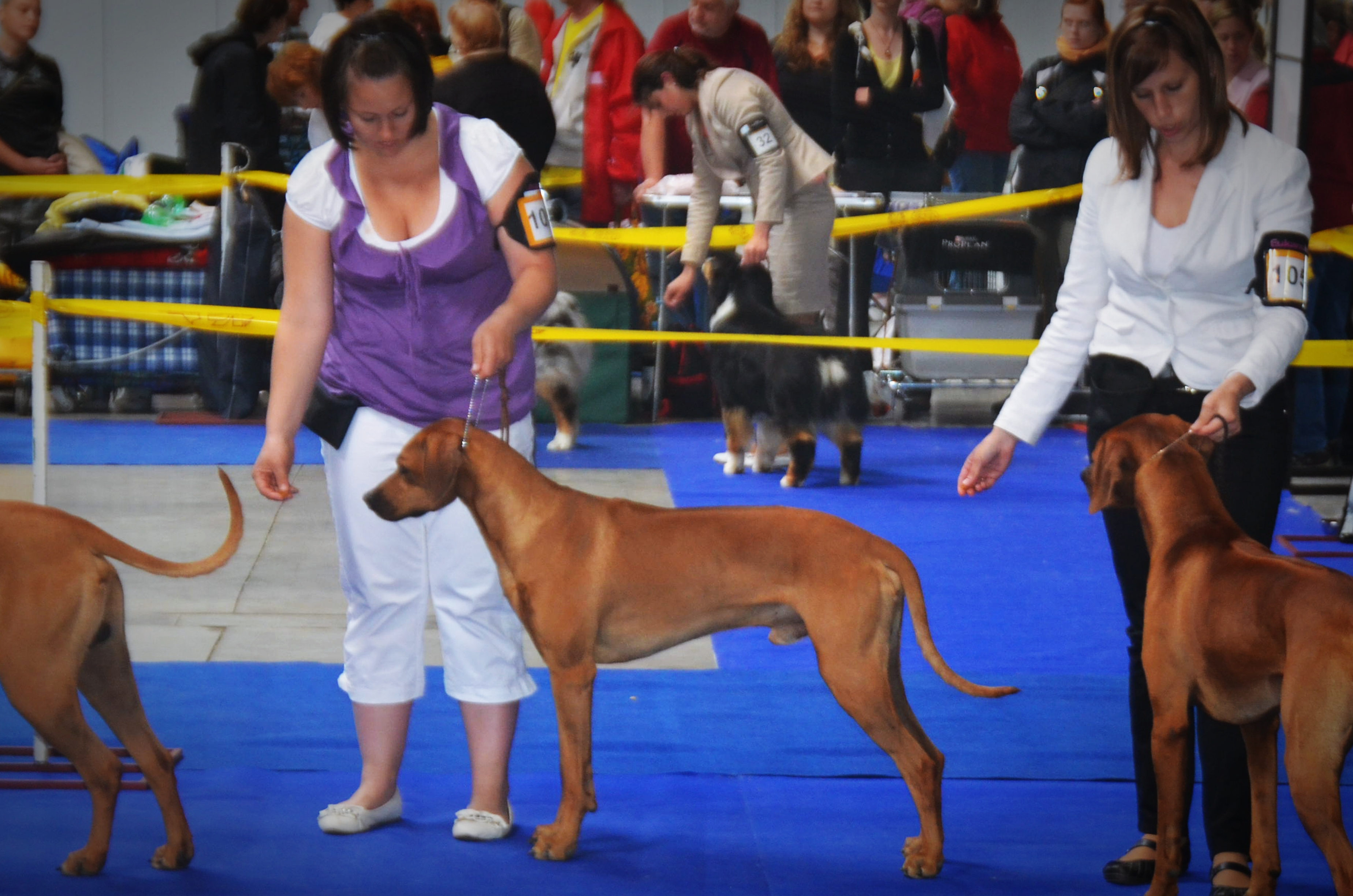 Do sobotního rána nás vítalo sluníčko! Ale z pelíšku se mi moc nechtělo. Když jsme šli na ranní procházku teplo taky moc nebylo. Ale náladu mi to nezkazilo, horší to bylo když jsem zjistil, že vlastně do výběhu dnes nejdu! Zase jsem tušil nějakou zradu v podobě výstavy. A od pravdy jsem nebyl vůbec daleko. Poté co jsem se nasnídal, jsme usedli do vozu a jelo se. Náš cíl tentokrát nebyl moc daleko od domova a zakotvili jsme v Praze. Parkovali jsme u super parčíku pro pesany, kde byli agi překážky. Na rozcvičku jsme si tam s Martinkou dali pár cviků a už jsme si to s bráchama hnali směr výstaviště. Šrumec jako na každé výstavě. Tentokrát se vystavovalo v hale a nebylo to teda zrovna příjemné prostředí na naše uši. Místečko jsme si zprvu udělali pěkně u východu abychom se s nikým nemuseli mačkat. Než jsme přišli na řadu, tak jsme se proběhli po místní zeleni a prozkoumali pár letadel, neb výstaviště sousedilo s letištěm v Letňanech. Pořád jsme kontrolovali abychom do kruhu nenastoupili pozdě. Matýsek usnul těsně před tím než jsme šli do kruhu. Bylo nás ve třídě 11, jak taky jinak, když někam jedeme my. Tak jsme byli rozděleni na dvě skupiny. Na mě šlo šílený spaní, ale z lóže mě zvedla moje láska z bonitace CHIWITSI INGWE. Házel jsem po ní očka, ale Martinka mě usměrňovala abych se soustředil na kruh. Ještě jsem si před mém posouzení vyběhl s Marečkem zablbnout na louku a přišli jsme akorát. Občas jsem si stoupl, pořád jsem čumákoval kdy už půjdeme pryč. Před paní rozhodčí jsem prý stál docela pěkně. Nebudeme lhát, když si Martinka myslela, že dopadneme trošinku lépěji, neb paní rozhodčí má ráda menší a jemnější typy. Ale bohužel prý já už jsem extrémně jemný. Martinky zklamání bylo bohužel znát:-( Tak mě aspoň na odreagování vzala do toho super parčíku, kde jsem si poblbnul s jednou slečnou a pak taky s bráchama. Kolem čtvrté hodiny odpoledne jsme nastoupili do soutěže o Nej chovatelskou skupinu. Abychom si aspoň trochu spravili tu náladu. Konkurence byla tentokrát veliká. Nastupovalo 8 družstev a poměrně hodně velkých plemen! Od Ivet jsme dostali nakázáno usmívat a usmívat! Dostali jsme se do užšího výběru a netrpělivě jsme s úsměvem na tváři vyčkávali na jaké místo nás rozhodčí umístí! Radost z výsledku byla veliká a domů jsme odjížděli aspoň částečně spokojení! Všem sluníčkům moc gratulujeme k jejich úspěchu a budeme se těšit za týden na další předváděčce v Litoměřicích.