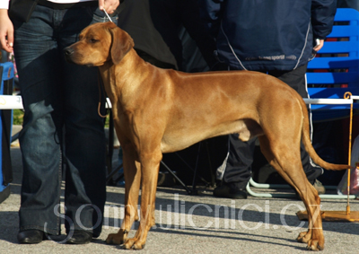 Letos již po druhé jsme se vydali směr České Budějovice a stejně tak jako posledně a v předešlém roce jsme vyjížděli déle než bylo plánováno. Když jsme se ráno probudili venku byla tma a zima. Vůbec se mi nikam nechtělo, ale poslušně jsem si musel s Martinkou oběhnout náš blok. Přivezli jsme si autíčko před barák a už jsme si balili věci na dlouhou cestu! Nebylo žádné překvapení, že jsme asi tak 30km před Budějovicemi posílali SMSku bráchům aby nám vyzvedli číslo:-) Když jsme dorazili do výstaviště auto jsme zaparkovali jako posledně, vytáhli Matýska z auta a už jsme si to štrádovali směr kruh. Tam na nás už čekali bráchové. Posuzování v kruhu šlo velmi rychle, tudíž jsme se ani nenadáli a už jsme tam stáli také! Ze začátku jsem dělal malinko brikule, ale to bych nebyl já. Pak jsem se tedy zapřel a poslušně jsem se vystavoval. Když si nás pan rozhodčí (mimochodem byl z Mladé Boleslavi, ale vůbec nám to nepomohlo:-)) prohlídl rozběhli jsme se dokola. Po té si nás začal posuzovat jednotlivě! Přišel jsem na řadu já a Martinka valila očka! Ani jsem se nehnul a tak jak mě postavila, tak jsem stál. Bez jediné ňamky! Pak jsme se ještě proběhli napříč kruhem, který mám dle rozhodčího výborný. Po nás šli ještě tři pejsci a už jsme jenom čekali co se bude dít dál. Rozhodčí nás propustil z kruhu s hezkým posudkem. Pak jsme si ještě zablbli s bráškama. Mareček mi koupil zásobu krmení, nějakou tu dobrůtku za odměnu a už jsme si to pelášili směr Mladá Boleslav. Sluníčkům jako vždy gratulujeme k jejich úspěchům.