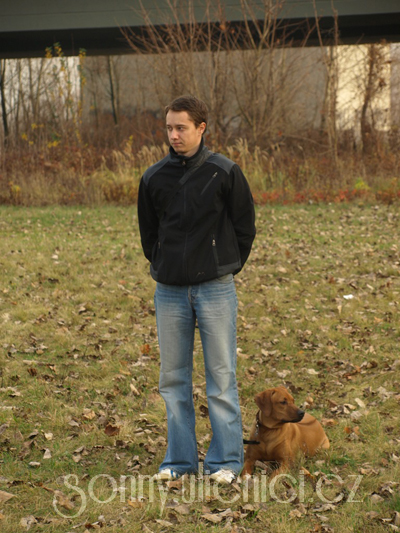 Hodina čekání byla trochu dlouhá, tak jsme si šli obejít Vinec, jen co jsme se vrátili skupina stopařů dorazila na plac a mohlo se jít na zkoušení ZOPkařů. A zde máme další 10 začínali jsme v deset hodin. První na řadu Ulíková – Sonny. Martinka svou řeč zvládla na jedničku a mohlo se vyrazit. Martinka zavelela k noze a poté volno. Vystřelil jsem jako šíp z luku a na přivolání ke mně jsem poslušně přiběhl k noze jsem taky zvládl na jedničku. Hodnocení pana rozhodčího bylo, že jsem si sedl křivě a mám laxní přístup:-) 7b. Ovladatelnost na vodítku až na pár chybiček, které si nepamatujeme jsem to zvládl skvěle, 8b. Ovladatelnost bez vodítka. Kdybychom šli stále rovně, mám to za plný počat, ale bohužel se zatočilo a mě zajímalo tolik vůní kolem, že jsem neodolal Asi na „50“ povel jsem se zpět k noze zařadil. Hodnocení Absolutně mě prý nezajímá panička, ale to není pravda:-p 0b. Sedni-lehni-vstaň ač na tréninku tyto povely zvládám ze všeho nejlépe, prostě ta studená země nebyla to pravé ořechové. Hodnocení bylo takové, že panička mi musí pomáhat vodítkem a křivě jsem si lehl k noze. Opět pomalé provedení, 7b. Odložení se bohužel pro nás provádělo na mokrém místě ve stínu:-( hned když Martinka odešla jsem vstal, pak jsem se posadil, pak jsem si na chvíli lehl a tak pořád dokola. Ale naštěstí jsem zůstal aspoň na místě provedení, 5b. Suma sumárum za I.část jsme vycvičili 27b.